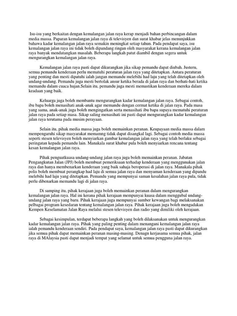 Panjang karangan anda hendaklah antara 200 hingga 250 patah perkataan. Feb 15, 2022 · contoh karangan spm: Jul 09, 2021 · kemalangan jalan raya.